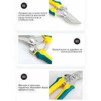 Набор Секатор садовый профессиональный и садовые ножницы для сада и огорода — незаменимый помощник в уходе за садом, цветами и деревьями. Набор садовый включает профессиональный секатор и садовые ножницы, которые идеально подходят для ухода за вашим садом, огородом или дачей. Эти инструменты, произведенные в Германии, отличаются высочайшим качеством и долговечностью. Секатор садовый предназначен для работы с толстыми ветками, обеспечивая аккуратные и точные срезы. Ножницы садовые для цветов, кустов и сборки урожая имеют острые волнистые лезвия, что позволяет легко обрабатывать растения без повреждения их структуры. Комплект идеально подходит для домашнего сада, огорода, дачи, флористики , домашними растениями и цветами . Он станет незаменимым помощником для профессионалов и любителей садоводства, обеспечивая эффективный уход за растениями. Преимущества: * Изготовлен из прочных материалов, что обеспечивает долговечность и надежность использования. * Эргономичная форма ручки обеспечивает удобный захват и комфорт при работе. * Подходит для обрезки веток разной толщины и жесткости. Этот секатор предназначен для эффективной обрезки цветов, растений, деревьев и кустарников. Он станет незаменимым помощником для садоводов, флористов и ландшафтных дизайнеров. Секатор легко справится с обрезкой роз, а также тонких и толстых веток на деревьях. Он идеально подходит для создания красивых форм и поддержания здоровья растений. Благодаря своей универсальности и эффективности, этот секатор станет отличным выбором как для начинающих садоводов, так и для профессионалов. Не упустите возможность приобрести надежный и эффективный инструмент для ухода за вашим садом и растениями!