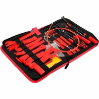 Набор инструментов на 40 предметов идеально подойдет для снятия и установки обшивки вашего транспорта, любых стереосистем, дверей и панелей, салона, пластиковой отделки, зажимов, креплений, обивки, молдингов. Инструменты для обшивки дверей и съема панелей , изготовлены из нейлона, легкие, но при этом более крепкие и ударопрочные, чем обычные инструменты из пластика. Они не поцарапают и не повредят поверхности автомобиля в течение всего рабочего процесса. Съемники клипс, клемм и зажимов изготовлены из стали и пластика, обладая высокой твердостью, они эффективны для удаления прочно скрепленных элементов. Набор инструментов для снятия обшивки поставляется с портативным чехлом на молнии, удобным для хранения и переноски инструментов.