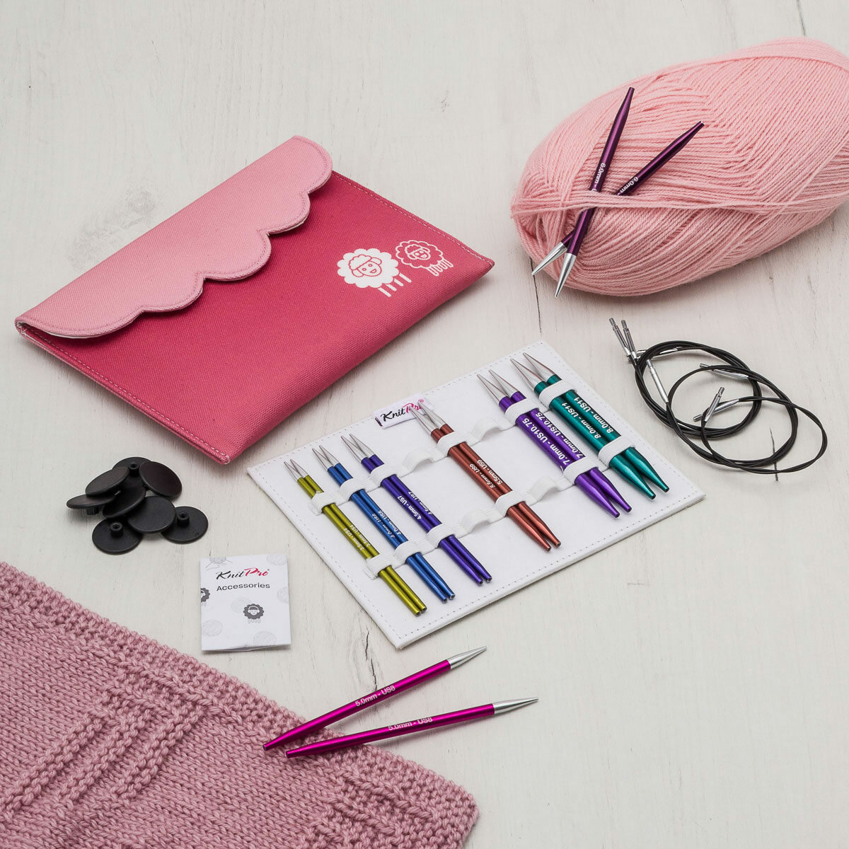 Набор съемных спиц Zing Deluxe от KnitPro – универсальный, спицы можно использовать как круговые или прямые удлиненные – просто подберите подходящие съемные лески и закрепите их так, как вам нужно!