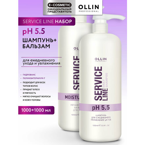 Профессиональный увлажняющий набор для ежедневного ухода SERVICE LINE шампунь и бальзам Ollin Professional для повседневного ухода сочетает эффективное очищение и мягкое увлажнение. Формула идеально сбалансирована для ежедневного применения — волосы остаются чистыми, ухоженными и послушными без утяжеления. Шампунь Оллин 1000 мл бережно очищает, не вызывая сухости и раздражения. Мягкие компоненты возвращают мягкость, блеск и свежесть. Подходит для частого применения даже при чувствительной коже головы. Бальзам 1000 мл завершает уход: насыщает влагой, облегчает расчёсывание, делает волосы гладкими и более послушными. Увлажняющий комплекс на основе растительных ингредиентов улучшает структуру и возвращает естественный блеск. Подходит для всех типов волос. E-COSMETIC – официальный поставщик OLLIN PROFESSIONAL.