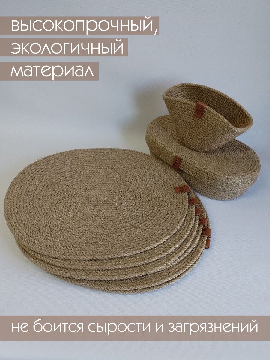 Набор салфеток из джута на стол, цвет бежевый, диаметр 33*39 см. отличный вариант для декорирования и сервировки обеденного стола в квартире, доме, офисе, кафе, ресторане или гостинице.