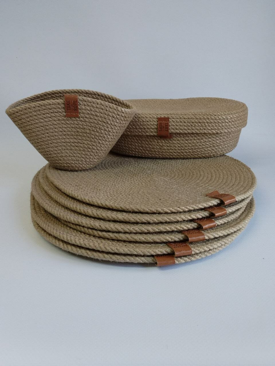 Джут не боится сырости и загрязнений, поэтому удобен в использовании на кухне.