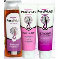 Уникальный набор Посейвлас для ухода за волосами. Лечебное действие шампуня способствует восстановлению питания и кровообращения волосяного фолликула и устранению выпадения волос.