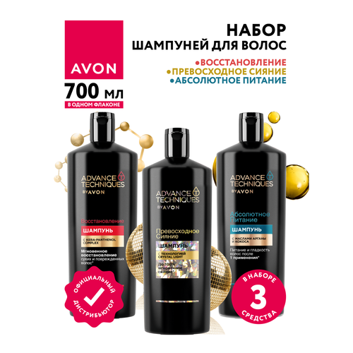 Купить Набор Шампуней для волос Avon Восстановление + Превосходное сияние + Абсолютное питание по 700 мл. с доставкой по всей России. Набор Шампуней для волос Avon Восстановление + Превосходное сияние + Абсолютное питание по 700 мл.: сравнение цен, характеристики, фото, актуальное наличие и цены.