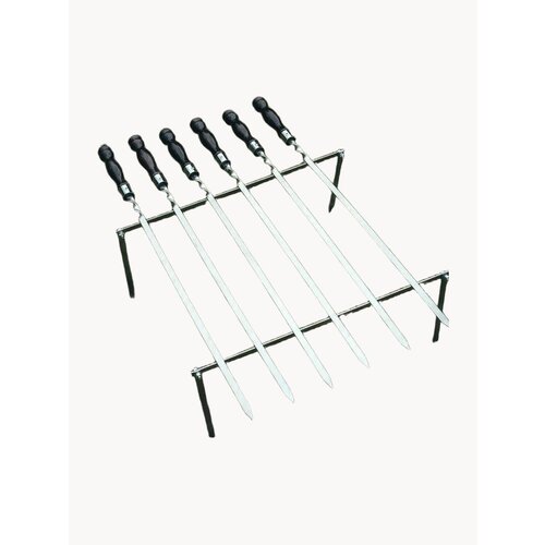 Набор шампуров с деревянной ручкой представляет собой комплект из 6 штук, каждый из которых имеет длину 70 см.