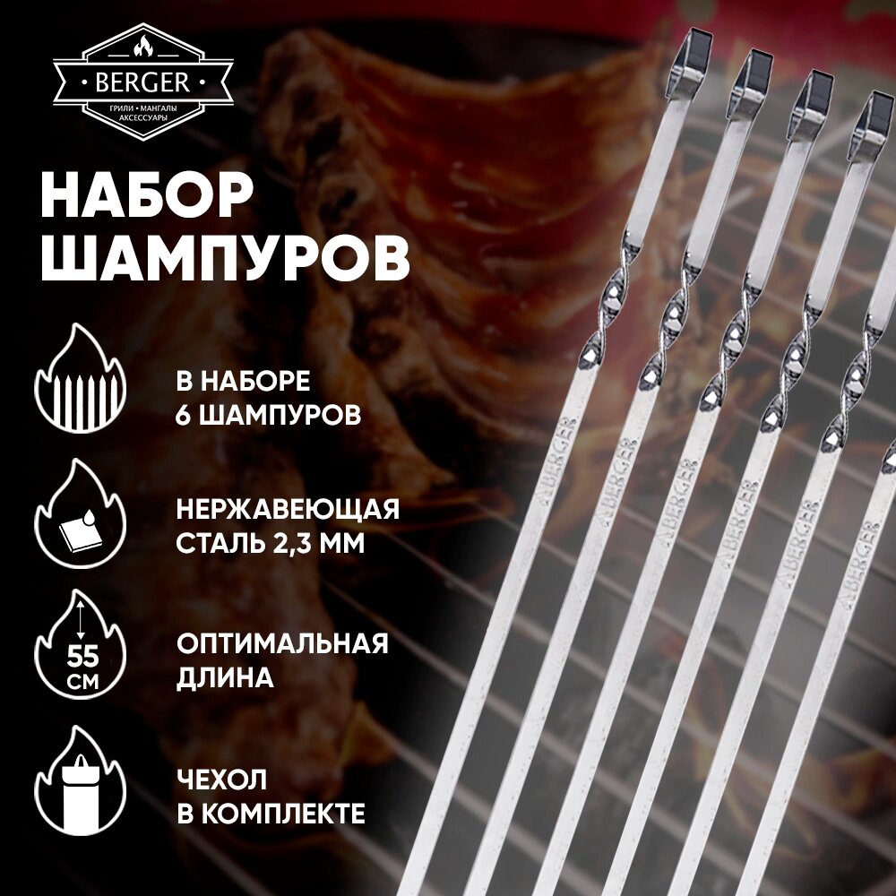 Набор шампуров BERGER 55 см 6 шт: сравнение цен, характеристики, фото, актуальное наличие и цены.