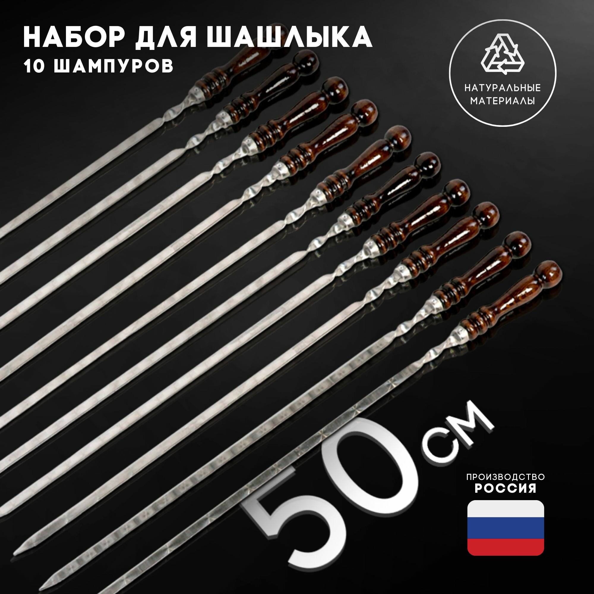 Набор шампуров с деревянной ручкой для мангала. 10шт