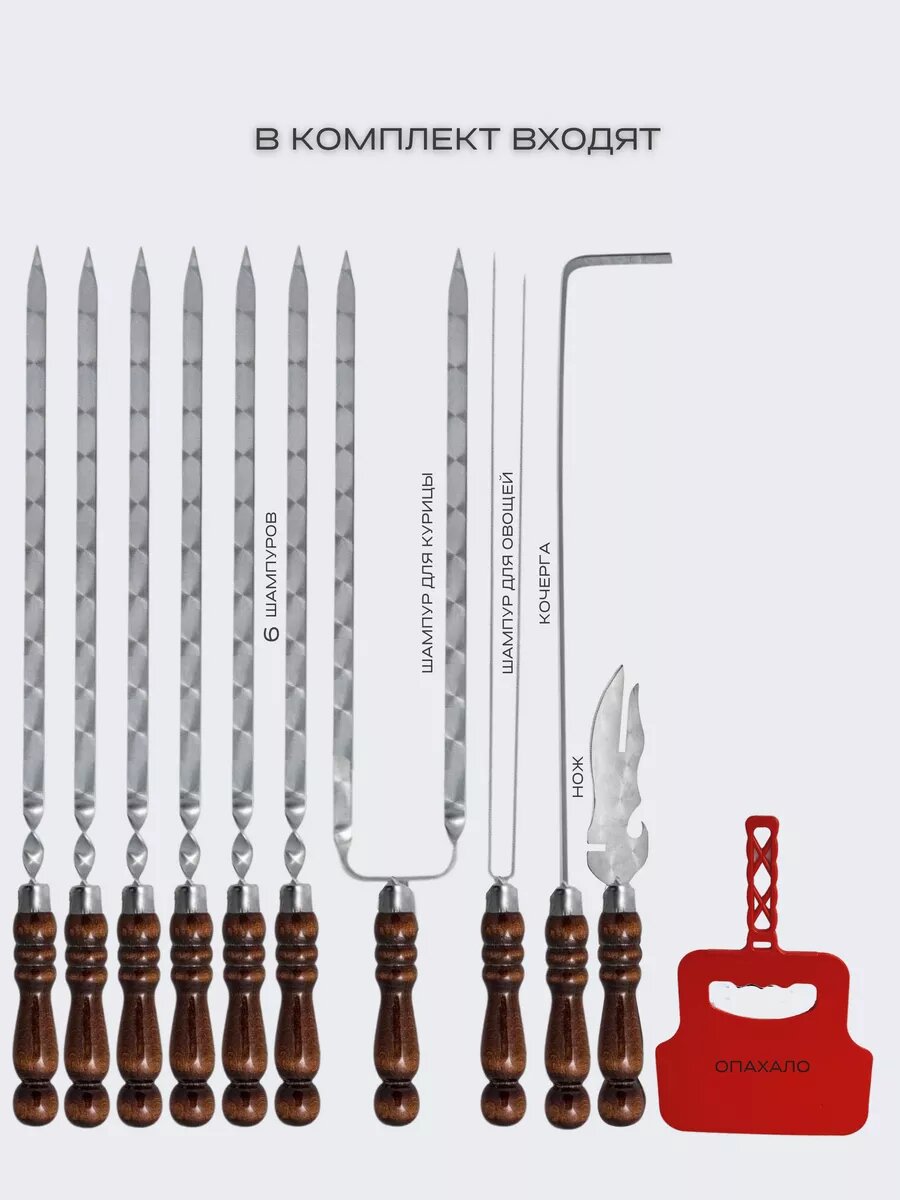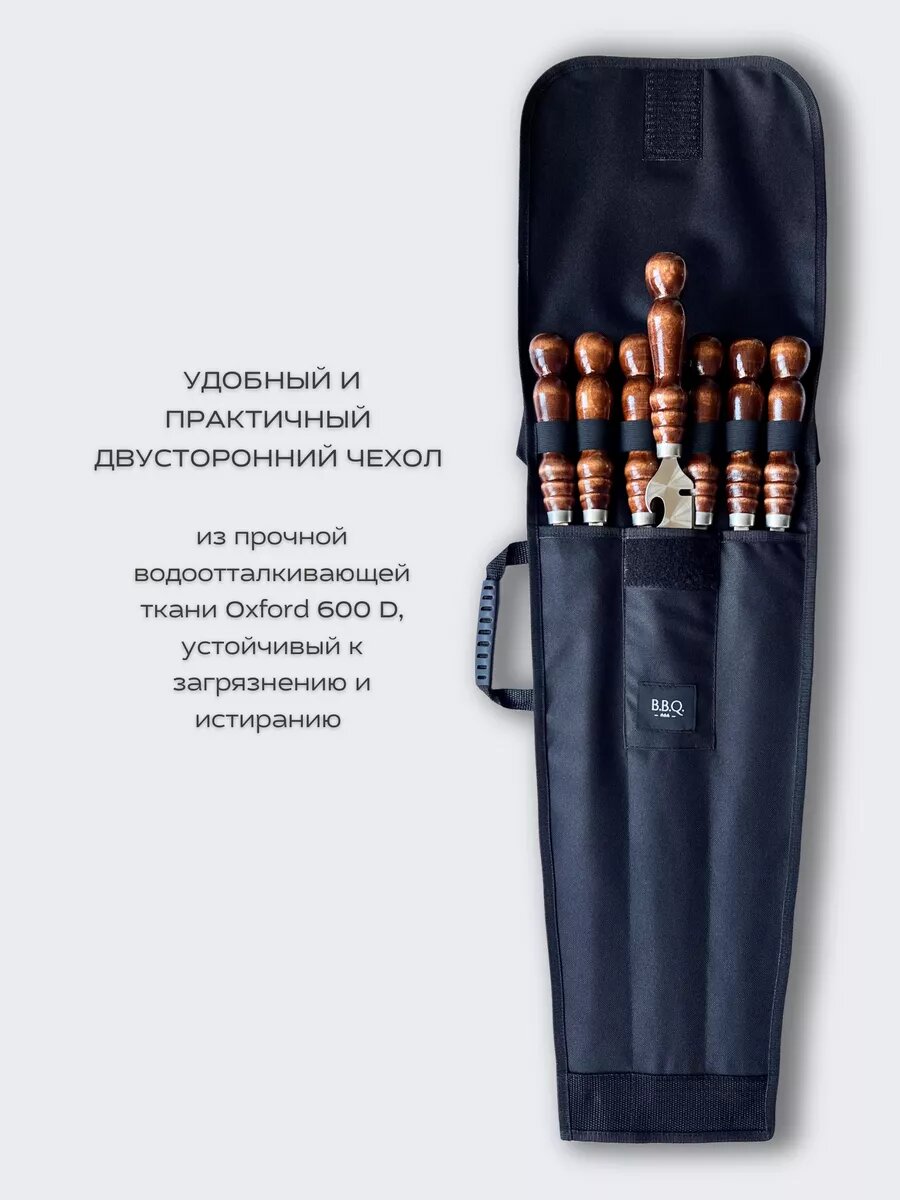 Отдых на природе - это прекрасный способ расслабиться и отдохнуть, забыв о домашних делах и заботах. Всем любителям хорошего отдыха понравится этот набор из разных шампуров от компании B.B.Q. Набор шампуров подарочный с деревянной ручкой - это отличный подарок мужчине. Все составляющие шашлычного набора находятся в двустороннем практичном чехле из водоотталкивающей износостойкой ткани. Шампуры производятся из 100% нержавеющей стали марки AISI 430. Она устойчива к нагреванию. Шампура от производителя в РФ. Наше преимущество - качественное исполнение. Надежное крепление. Использование нетоксичного лака. Толстая пищевая нержавеющая сталь. Острое ровное острие. Практичный удобный чехол. Набор подойдет для приготовления на мангале барбекю, стейка, сосисок, люля - кебаб. Этот набор шампуров для шашлыка подарочный можно подарить на годовщину свадьбы, юбилей и любой другой праздник другу, начальнику, брату, дедушки, сыну, папе.