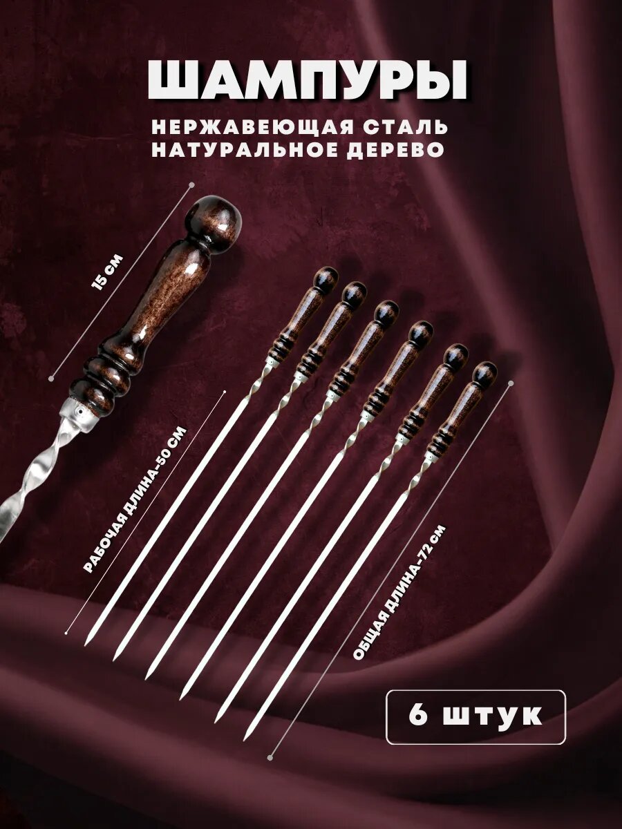 | Подробная комплектация | шампура с деревянной ручкой - 6 шт., нож для снятия шашлыка 1 шт. |