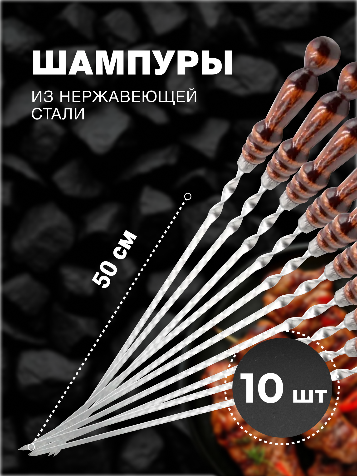 Набор шампуров из нержавеющей стали с деревянной ручкой, 500х12х2,5 мм 10 шт.: сравнение цен, характеристики, фото, актуальное наличие и цены.