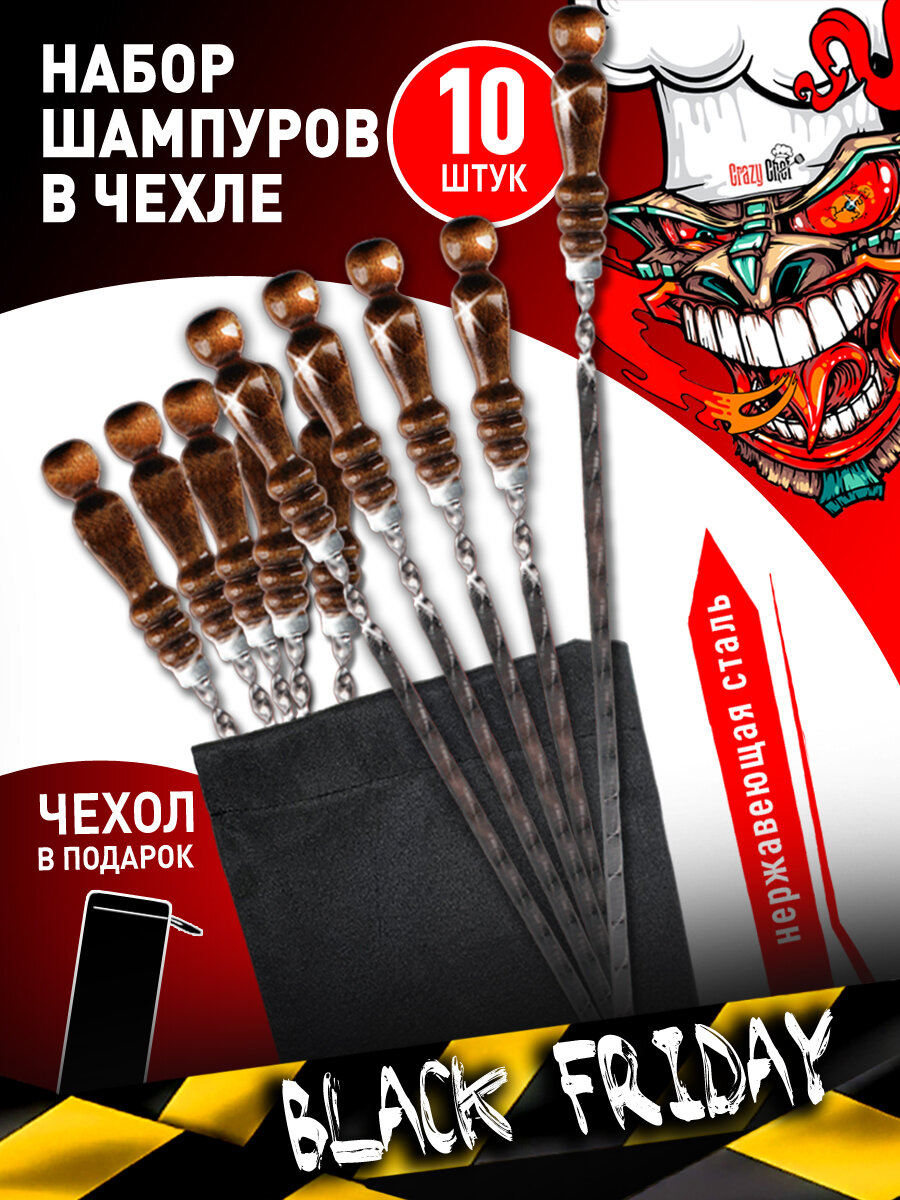 Набор шампуров подарочный с деревянными ручками из бука в чехле, 10 шт, 62 см: сравнение цен, характеристики, фото, актуальное наличие и цены.