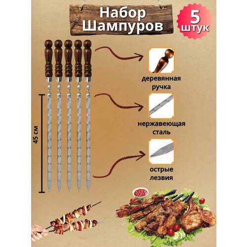 Купить Набор шампуров с деревянной ручкой 45 см (5 штук) с доставкой по всей России. Набор шампуров с деревянной ручкой 45 см (5 штук): сравнение цен, характеристики, фото, актуальное наличие и цены.