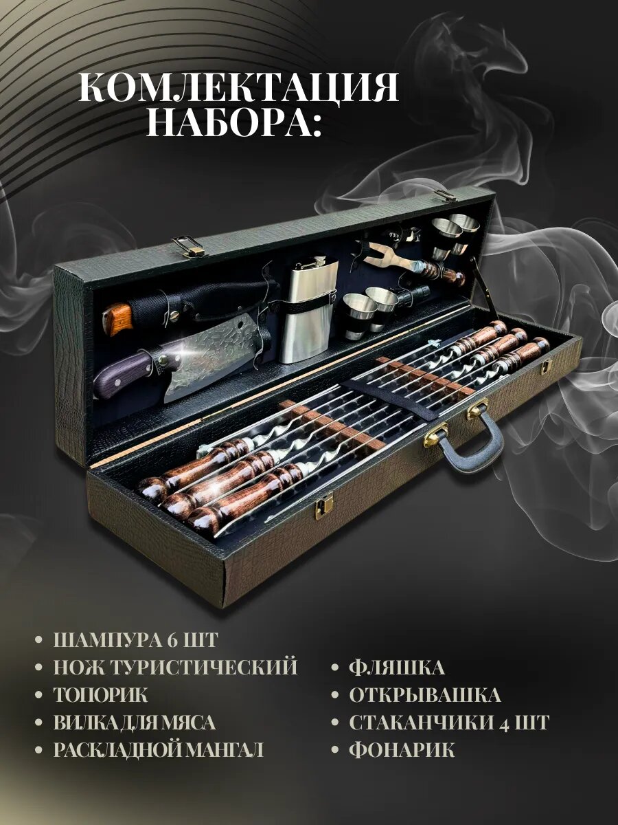 Набор шампуров с деревянной ручкой для шашлыка и мангала подарочный шашлычный в кейсе: сравнение цен, характеристики, фото, актуальное наличие и цены.