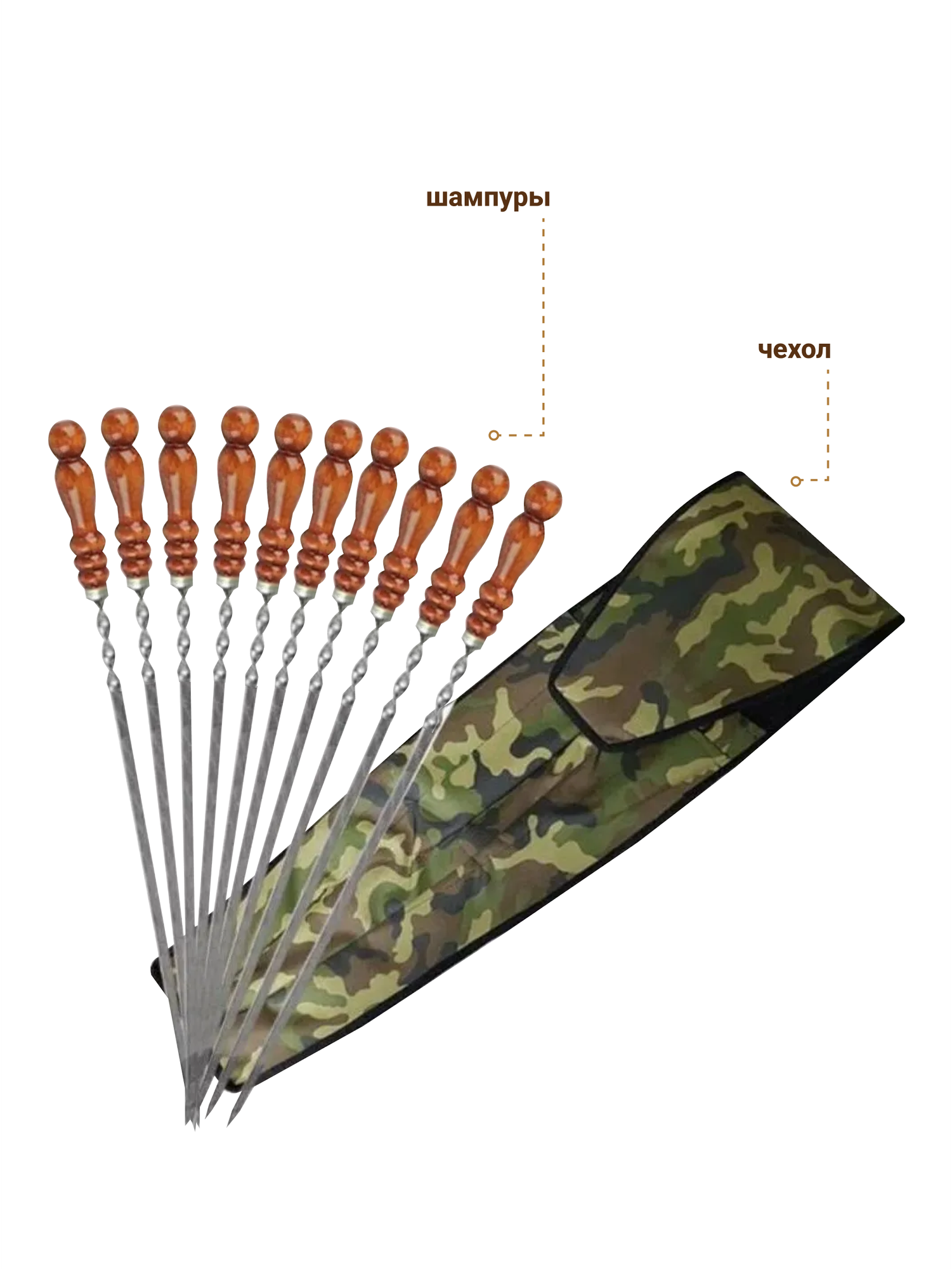 Набор шампуров в чехле Люкс, 50 см. нерж, дер/ручка, 10 шампуров (11 предметов): сравнение цен, характеристики, фото, актуальное наличие и цены.