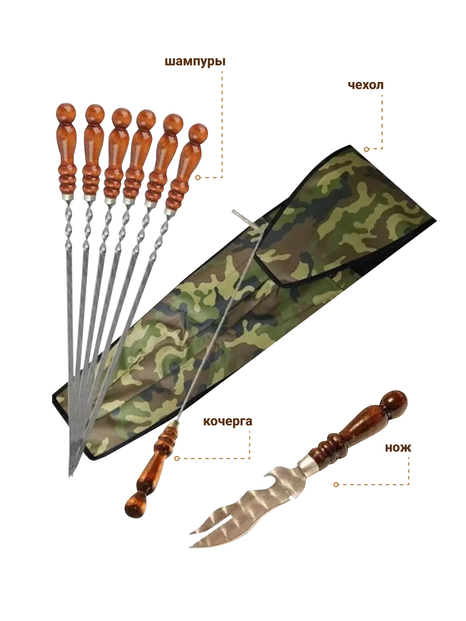 Набор шампуров в чехле Люкс нержавеющая сталь, с деревянными ручками, 6 шампуров 50 см, нож, кочерга (9 предметов): сравнение цен, характеристики, фото, актуальное наличие и цены.