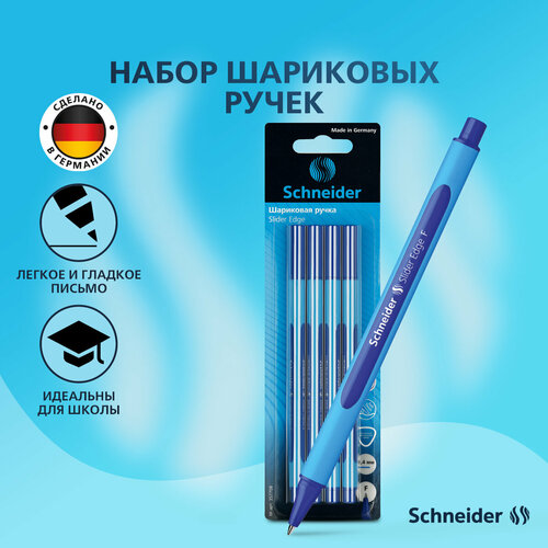 Купить Набор шариковых ручек Schneider «Slider Edge F» 4шт, синие, 0,8мм, трехгранный корпус, блистер с доставкой по всей России. Набор шариковых ручек Schneider «Slider Edge F» 4шт, синие, 0,8мм, трехгранный корпус, блистер: сравнение цен, характеристики, фото, актуальное наличие и цены.