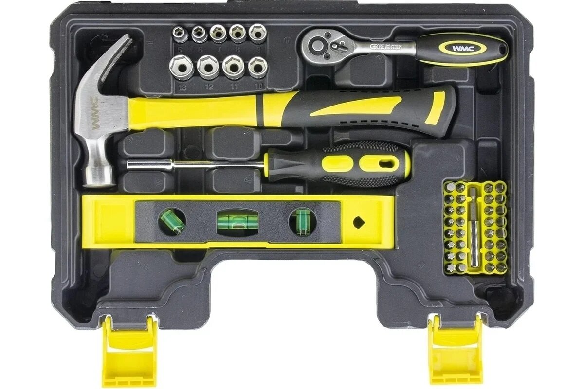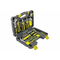 | Дополнительная информация | Ключ разводной 8” Нож Пассатижи комбинированные 6” Диагональные бокорезы 6" Рулетка 3М Набор ключей шестигранных Г-образных в пластиковом держателе 9 пр. 1.5, 2, 2.5, 3, 4, 5, 6, 8, 10 мм Головки 1/4" 5,6,7,8,9,10,11,12,13мм Tрещотка 1/4" Молоток-гвоздодер 230 гр. Рукоятка с магнитным битодержателем 1/4" Строительный уровень 9" Набор бит (с держателем) 33пр: SL 3-4-5-6-7, PH 0 (2 шт), 1 (2 шт), 2 (2 шт), 3 (2 шт), PZ 1 (2 шт), 2 (2 шт), 3 (2 шт), H 2-3-4-5.5-5-6, T10-15-20-25-27-30-40 Удлинитель 60мм Пластиковый кейс |