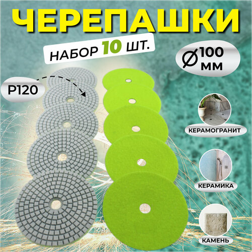 Набор шлифовальных, полировальных дисков по камню 10шт 120Р, 100 диаметр + пластиковая насадка: сравнение цен, характеристики, фото, актуальное наличие и цены.