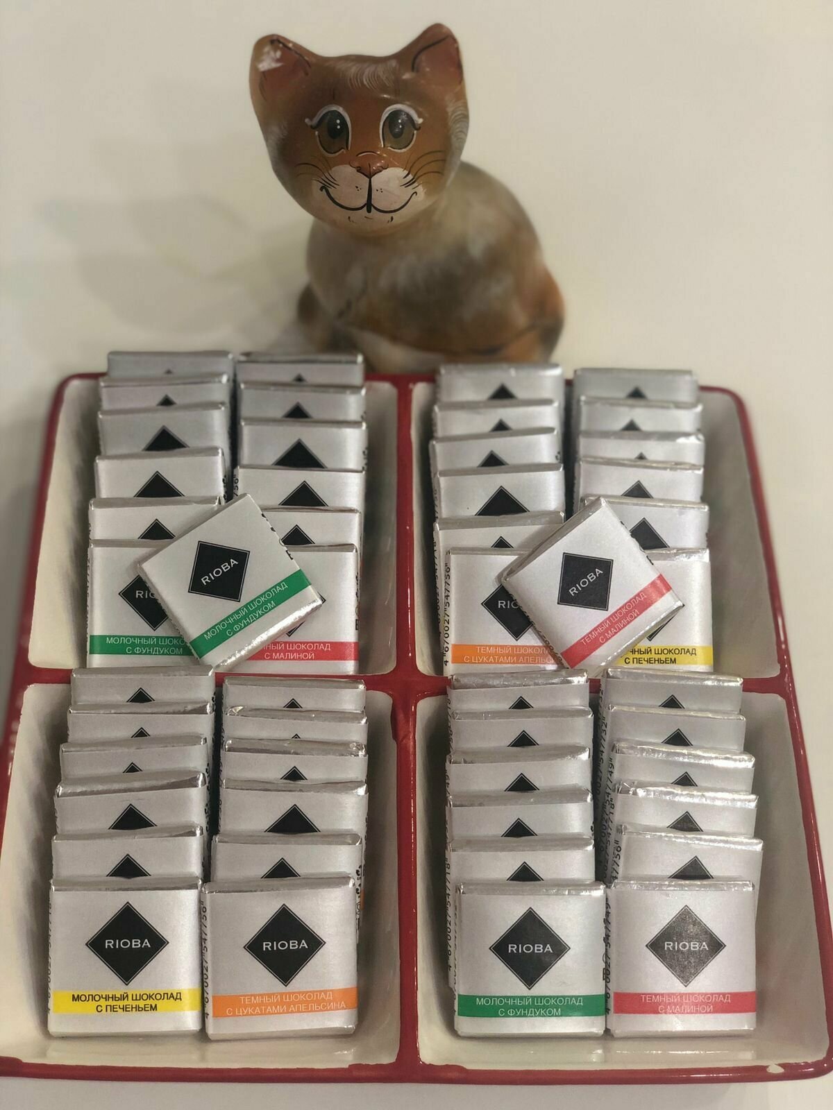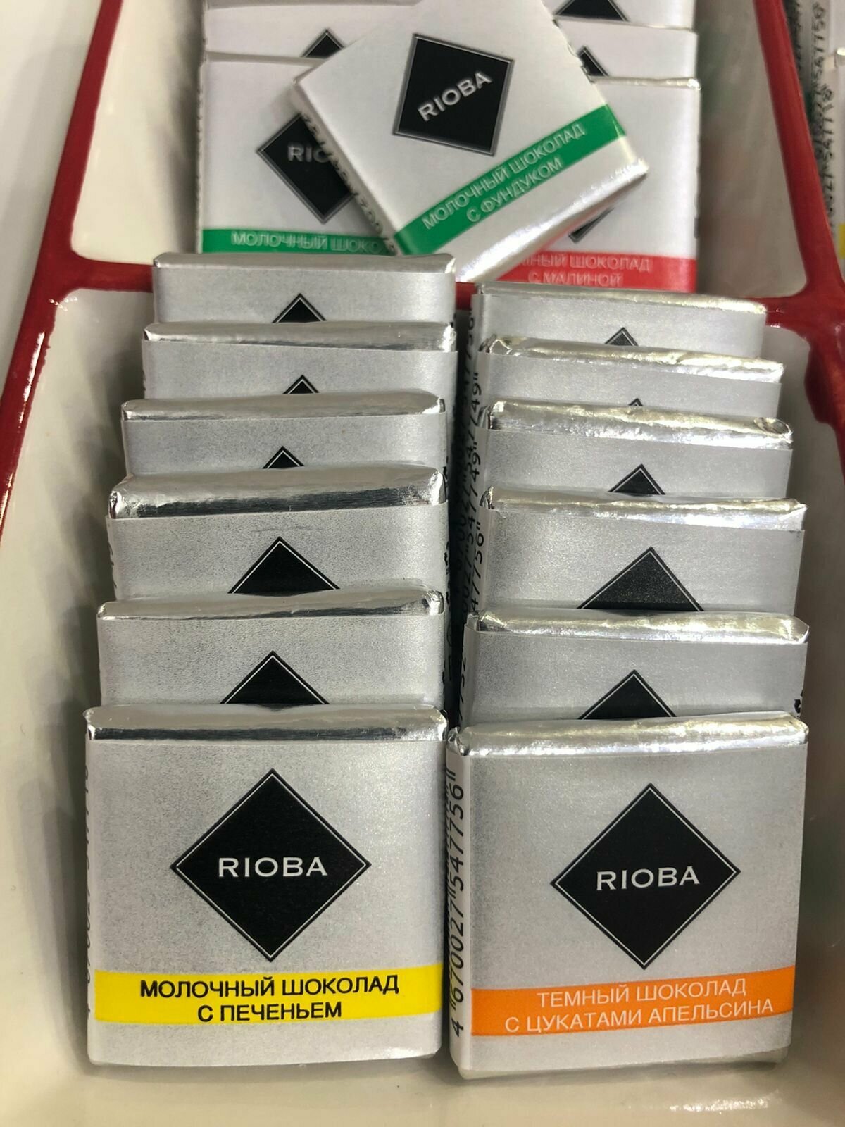 Набор шоколада RIOBA mini 60 шт по 5 гр - это отличный выбор для тех, кто любит разнообразие вкусов и добавок. В набор входят 4 вида шоколада, каждый из которых обладает своим уникальным вкусом и ароматом.