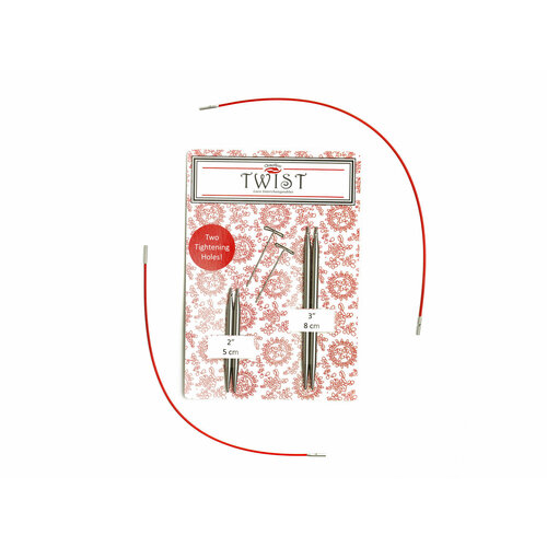 В состав набора Short Combo Twist входят: 1 пара спиц 5 см, 1 пара спиц 8 см, 1 леска 13 см, 1 леска 15 см, 2 ключа для закручивания. Диаметр спиц 1.5 мм. Материал спиц - хирургическая сталь. Кончики спиц тонкие, заостренные. Леска выполнена из многожильного стального троса, обтянутого красным нейлоном. На спицах размер нанесен лазерной гравировкой. Маркировка не стирается со временем.