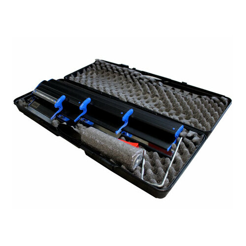 В набор входит: 4 шпателя со сменными лезвиями толщиной 0,5 мм. - 250, 400, 600 и 800 мм. Валик для нанесения шпаклевки Ручка валика