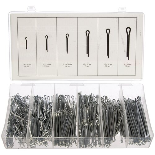 Набор шплинтов Сибртех S головки х L: 1, 6х25, 2, 3х25, 2, 3х38, 3, 1х32, 3, 1х50, 4х63 мм, 555 предметов 47604: сравнение цен, характеристики, фото, актуальное наличие и цены.