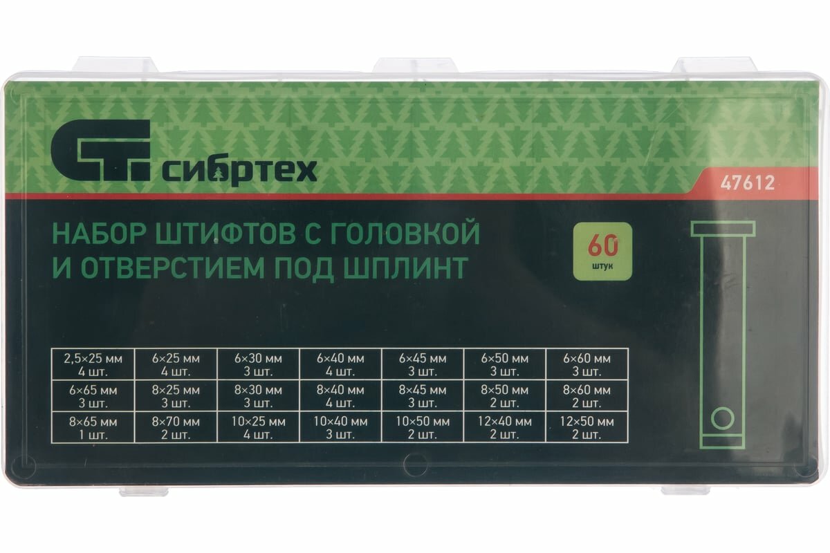 Набор штифтов с головкой и отверстием под шплинт СИБРТЕХ 60 предметов 47612: сравнение цен, характеристики, фото, актуальное наличие и цены.