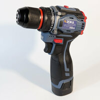 Дрель-шуруповерт аккумуляторная ZOKA оснащена надежным бесщеточным двигателем. Используется для сверления отверстий разного диаметра, а также вкручивания и выкручивания крепежных элементов (болтов, саморезов). Предусмотрено две скорости, что позволяет настроить инструмент под конкретную задачу. Для питания используется литий-ионный аккумулятор, который обладает высокой плотностью энергии и практически незаметным уровнем саморазряда. Удобная эргономичная ручка с нескользящей поверхностью улучшает контроль над дрелью. Небольшой вес инструмента уменьшает нагрузку при больших объемах работы.