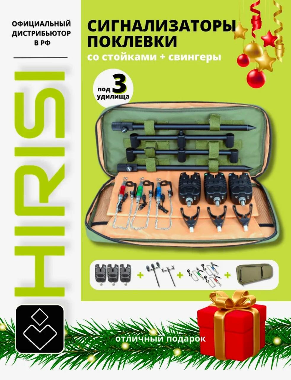 Купить Набор сигнализаторов поклёвки с подставкой для 3-х удилищ со свингерами Hirisi с доставкой по всей России.