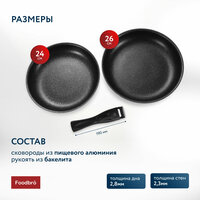 Набор сковород Foodbro состоит из двух предметов: сковороды диаметром 24 см и сковороды диаметром 26 см.