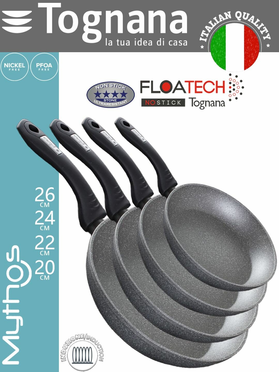 Набор сковород Tognana Mythos Collection 20 см, 22 см, 24 см, 26 см