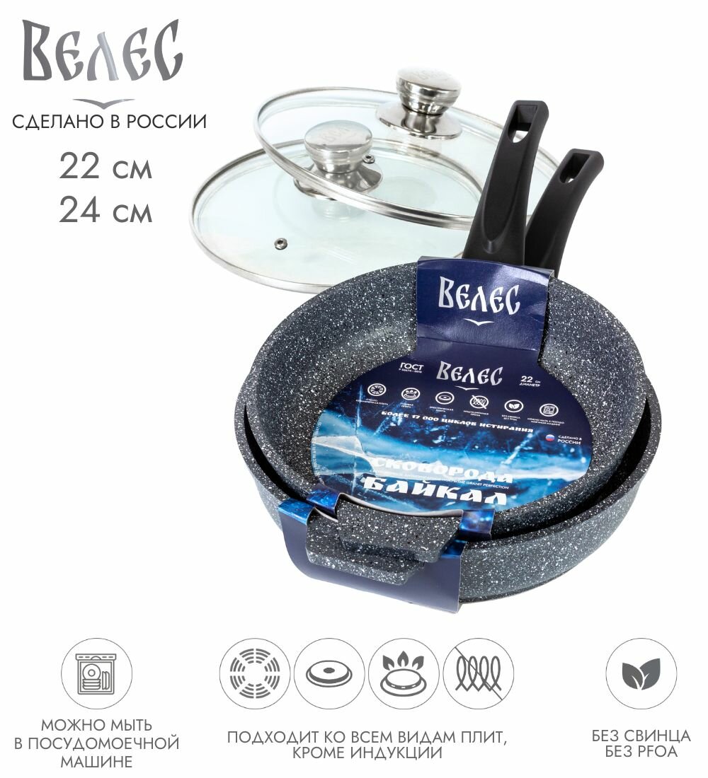 Набор сковородок 2шт.(22см/24см) с 7-слойным антипригарным ЭКО покрытием байкал, крышки, велес: сравнение цен, характеристики, фото, актуальное наличие и цены.