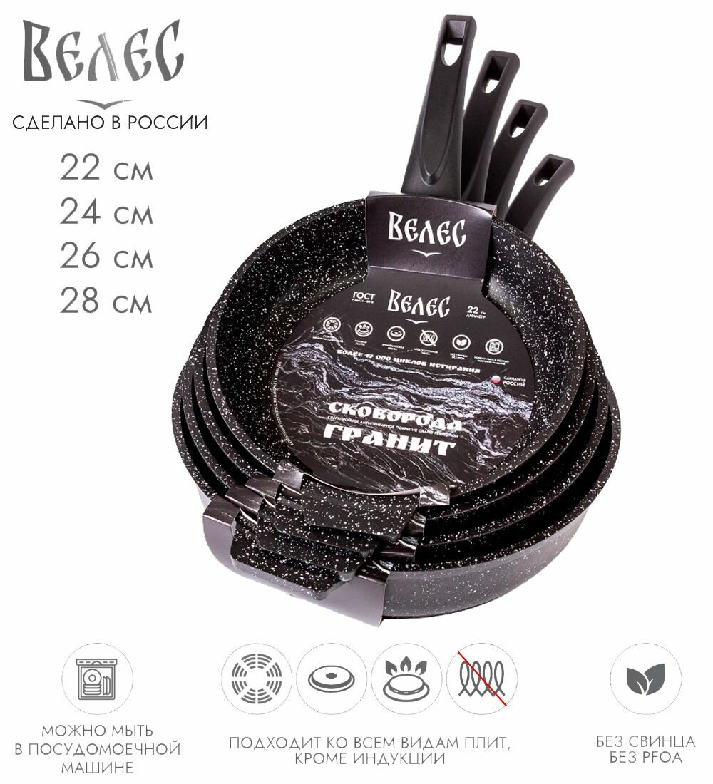 Набор сковородок 4шт.(22см/24см/26см/28см) с 7-слойным антипригарным ЭКО покрытием гранит, велес: сравнение цен, характеристики, фото, актуальное наличие и цены.