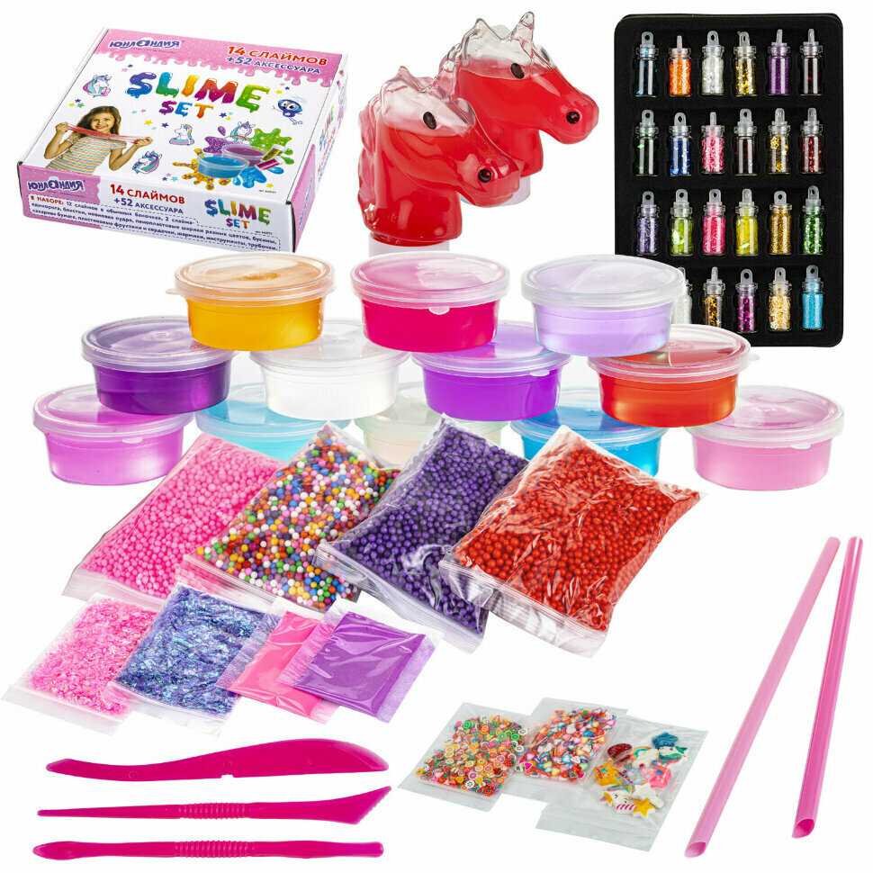 Купить Набор слаймов 14 цветов, 52 аксессуара, в колорбоксе, юнландия, 663777, 663777 с доставкой по всей России.