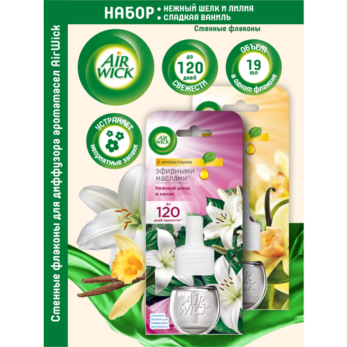 Купить Набор сменных флаконов AIRWICK Нежный шелк и лилия + Сладкая ваниль по 19 мл. с доставкой по всей России. Набор сменных флаконов AIRWICK Нежный шелк и лилия + Сладкая ваниль по 19 мл.: сравнение цен, характеристики, фото, актуальное наличие и цены.