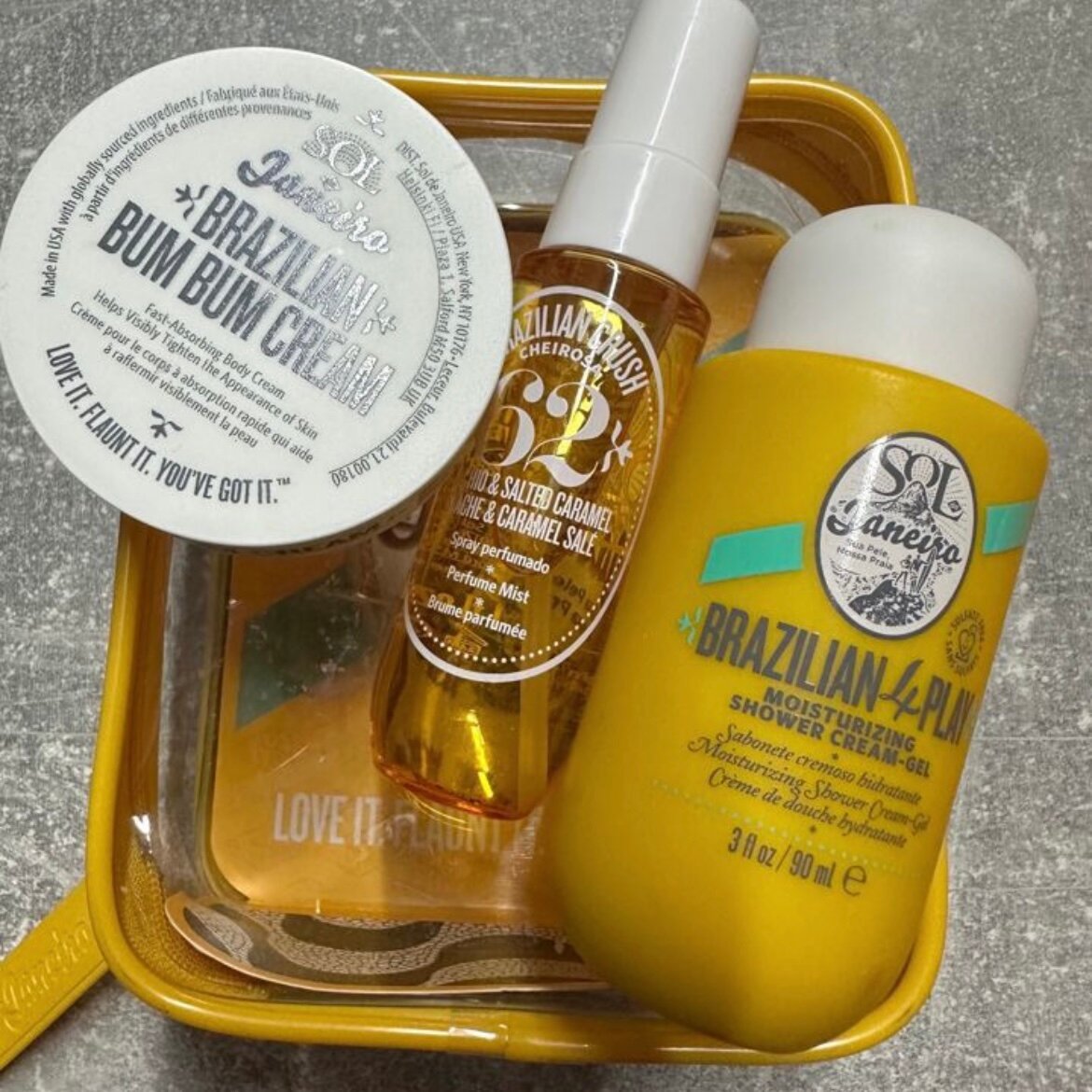| Состав | Beija Flor Elasti-Cream (50ml): Aqua (Water, Eau), Cetearyl Alcohol, Parfum (Fragrance), Caprylic/Capric Triglyceride, Isopentyldiol, Glyceryl Stearate, C13-16 Isoparaffin, Glycerin, Pyrus Malus (Apple) Fruit Extract, Cetyl Alcohol, Cocos Nucifera (Coconut) Oil, Caryodendron Orinocense (Cacay) Seed Oil, Butyrospermum Parkii (Shea) Butter, Behenyl Alcohol, Squalane, Collagen Amino Acid, Theobroma Grandiflorum (Cupuaçu) Seed Butter, Copaifera Officinalis (Balsam Copaiba) Resin, Astrocaryum Vulgare (Tucumã) Kernel Oil, Astrocaryum Murumuru Seed Butter, Daucus Carota Sativa (Carrot) Root Extract, Tocopherol, Oryza Sativa (Rice) Bran Extract, Rosmarinus Officinalis (Rosemary) Leaf Extract, Helianthus Annuus (Sunflower) Seed Oil, Helianthus Annuus (Sunflower) Extract, Ethylhexylglycerin, Pentylene Glycol, Heptyl Undecylenate, Potassium Cetyl Phosphate, Tetrasodium Glutamate Diacetate, Xanthan Gum, Citric Acid, Sodium Hydroxide, Phenoxyethanol, Mica, Alpha-Isomethyl Ionone, Benzyl Salicylate, CI 77891 (Titanium Dioxide). Beija Flor Skin-Renewing Body Wash (90ml): Aqua (Water, Eau), Sodium Cocoyl Isethionate, Stearic Acid, Sodium Methyl Cocoyl Taurate, Glycol Distearate, Cocamidopropyl Hydroxysultaine, Glycerin, Parfum (Fragrance), Squalane, Caryodendron Orinocense (Cacay) Seed Oil, Hibiscus Sabdariffa Flower Extract, Ethylhexylglycerin, Tetrasodium Glutamate Diacetate, Polyquaternium-7, Sodium Isethionate, Sodium Hydroxide, Sodium Methyltaurate, Xanthan Gum, Phenoxyethanol. Cheirosa 68 Perfume Mist (30ml): Alcohol Denat., Aqua (Water, Eau), Parfum (Fragrance), Alpha-Isomethyl Ionone, Benzyl Salicylate. |