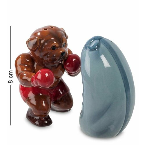Набор "Боксер" выполнен в виде забавного медвежонка, занимающегося тренировкой перед боксерской грушей. Эта яркая и игривая композиция оживляет любой стол и создает позитивное настроение. Медвежонок, как опытный боксер, требует серьезного подхода, а перец, которым он щедро приправляет свои "удары", гарантирует незабываемые ощущения. Соль, всегда готовая к действию, помогает в тренировке и делает любой прием пищи более вкусным.