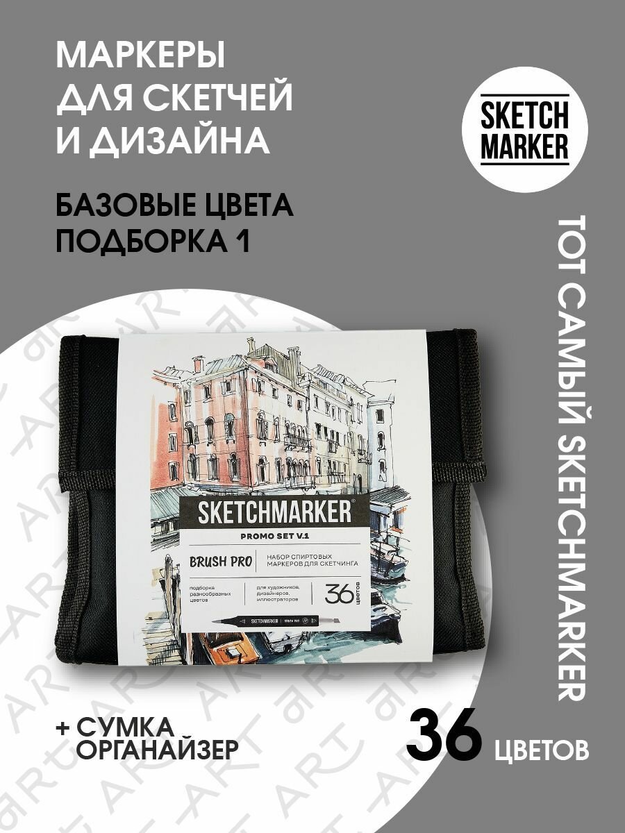 Купить Набор спиртовые маркеры для скетчинга и рисования 36 шт. в сумке SKETCHMARKER серия Brush Basic с доставкой по всей России.