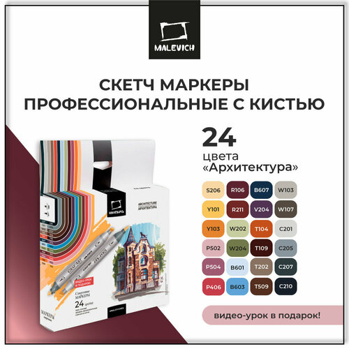 Набор спиртовых маркеров Малевичъ GrafArt Brush, серия «Архитектура», 24 цвета: сравнение цен, характеристики, фото, актуальное наличие и цены.