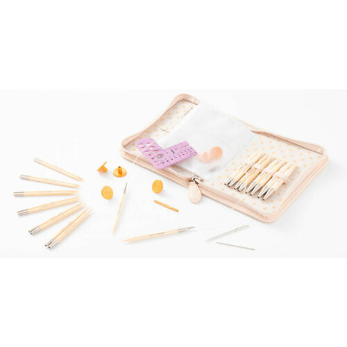 Набор спиц съемных укороченных "CarryC" (в наборе: органайзер, спицы съемные (3,5мм, 3,75мм, 4мм, 4,5мм, 5мм, 5,5мм, 6мм, 6,5мм, 7мм, 8мм, 9мм, длина 9,5см), тросик (50см, 60см, 80см), заглушки - 6шт, адаптер для тросика 1шт, иглы в ассортименте 2шт, линейка для измерения размера спиц с резаком для нити), бамбук/металл/пластик, 11 видов спиц в наборе