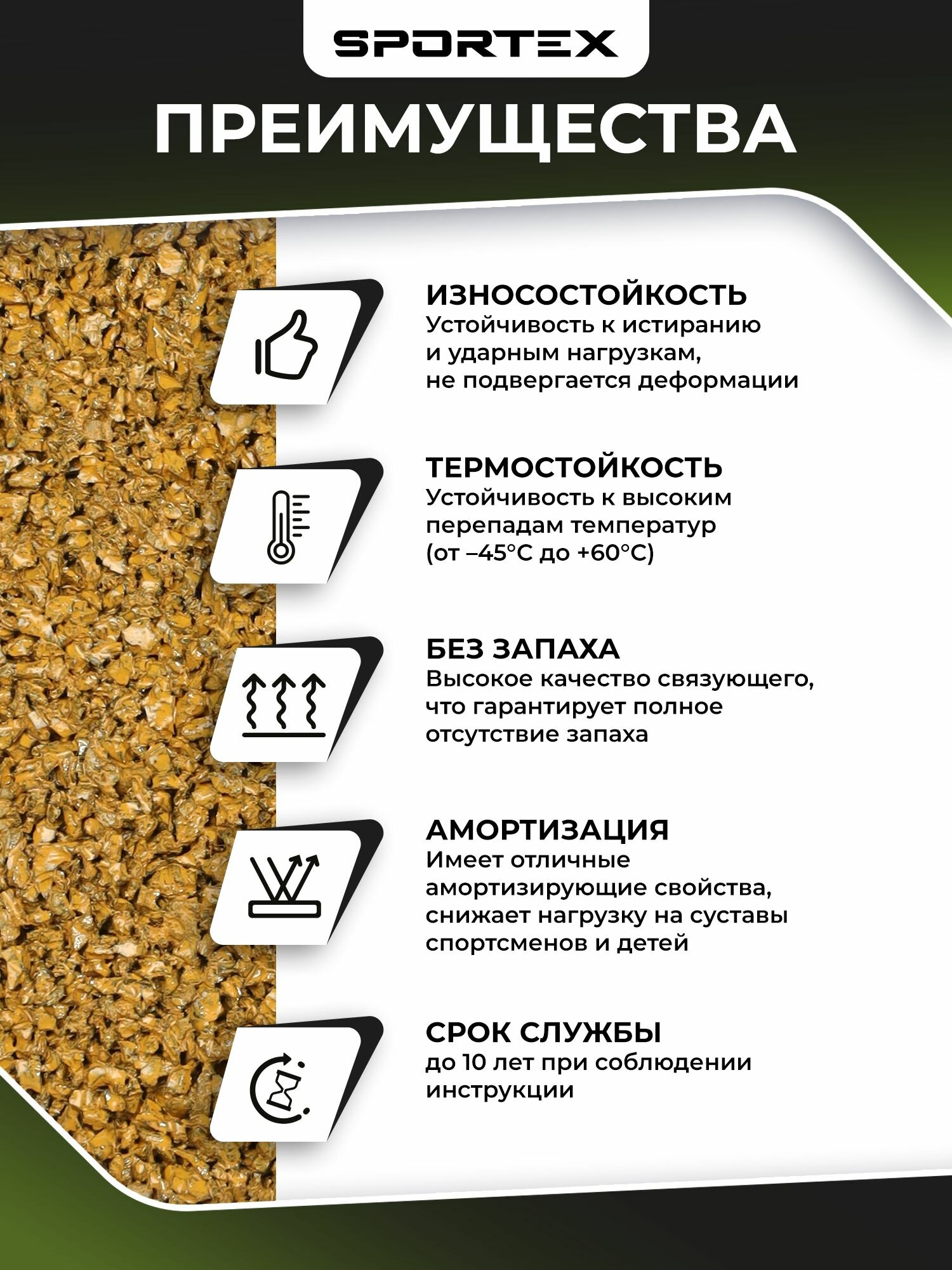 SPORTEX — это готовое решение для самостоятельной укладки наливного резинового покрытия из резиновой крошки. Без опыта, без дорогостоящего инструмента и без привлечения специалистов — всё просто, быстро и удобно. Более 90 % покупателей укладывают покрытие за 1 день! Выберите нужный объём: в продаже готовые наборы на площадь от 1 до 3 м². Нужно больше? Все компоненты — крошка, клей, пигмент — можно докупить отдельно для любой площади.