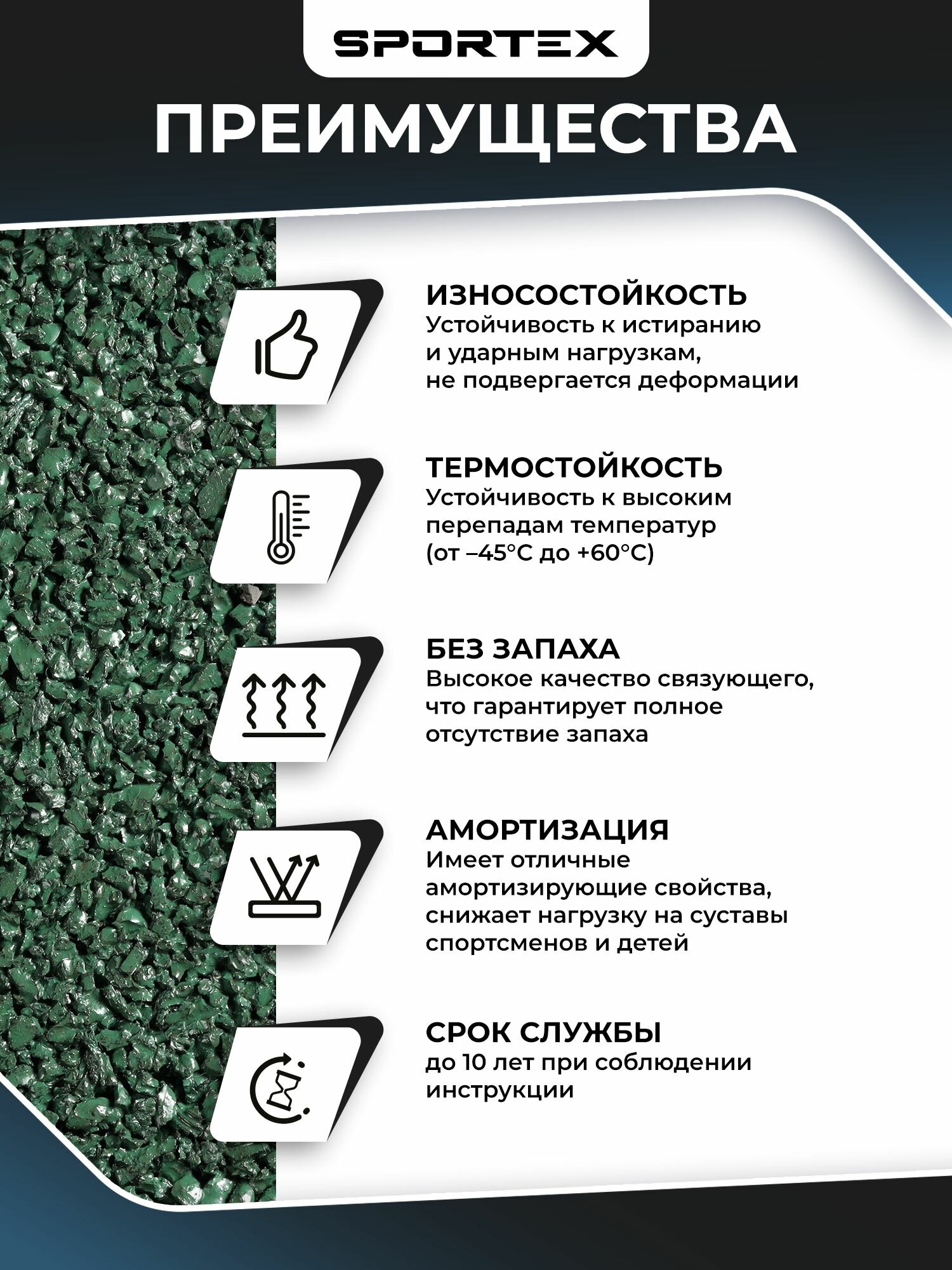 Купить Набор Sportex, для самостоятельного устройства резинового покрытия, фракция 2-4мм, 20кг, цвет зеленый с доставкой по всей России. Набор Sportex, для самостоятельного устройства резинового покрытия, фракция 2-4мм, 20кг, цвет зеленый: сравнение цен, характеристики, фото, актуальное наличие и цены.