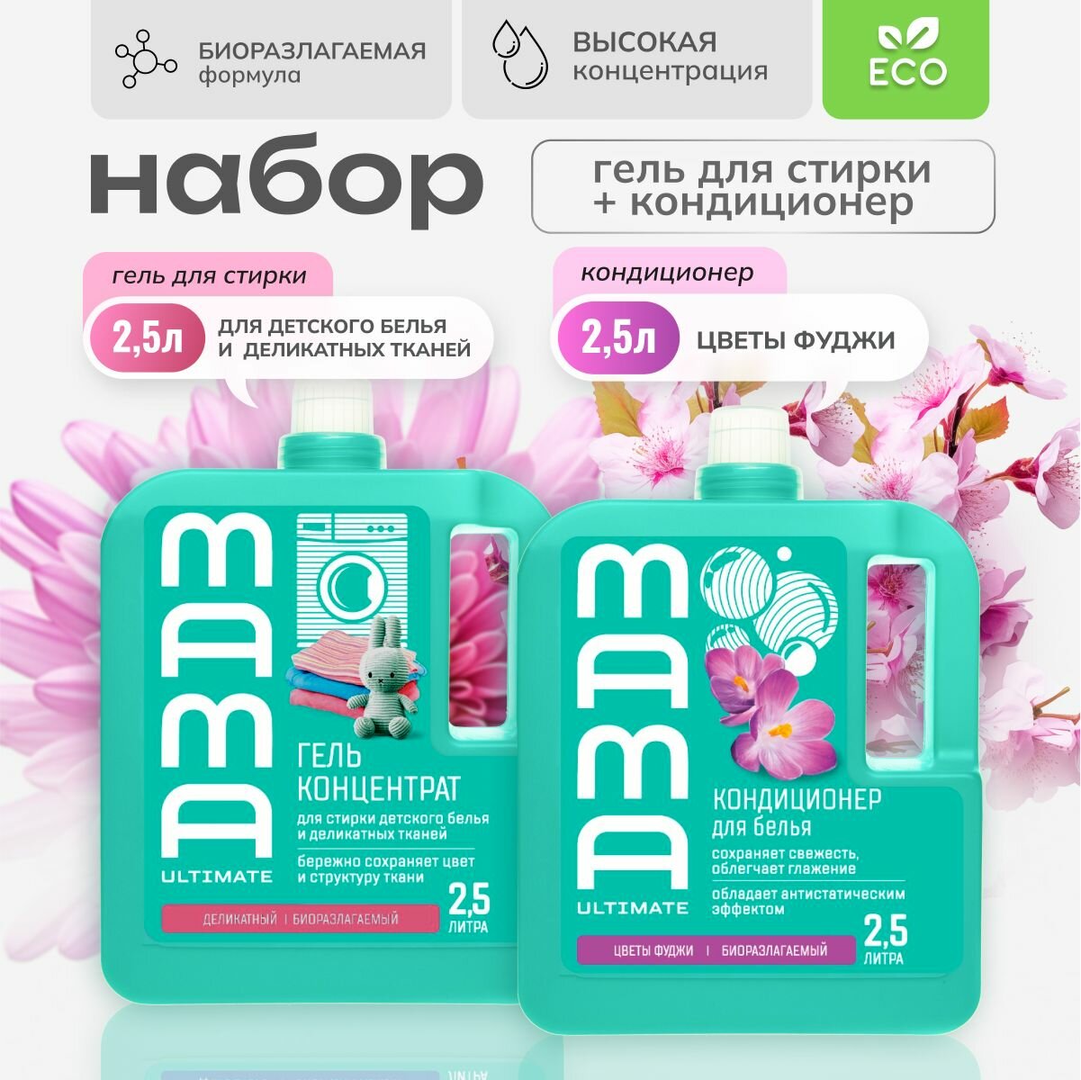 Купить Набор средств для стирки Mama Ultimate Гель для детского белья 2,5л + Кондиционер для белья Фуджи, 2,5л с доставкой по всей России.