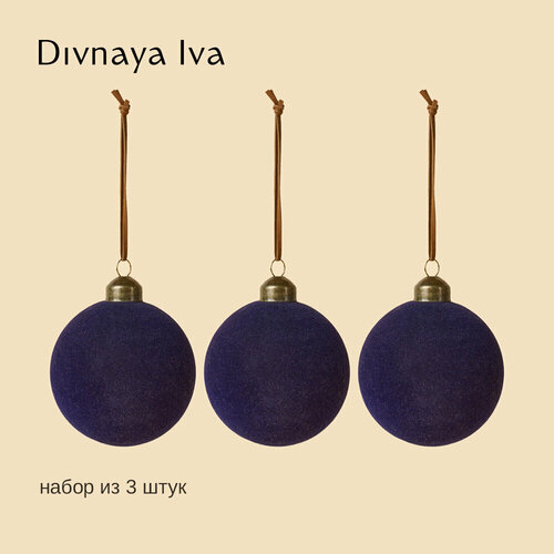 Набор стеклянных бархатных елочных шаров 3 шт, ручная работа, цвет зеленый, диаметр 8 см, Divnaya Iva: сравнение цен, характеристики, фото, актуальное наличие и цены.