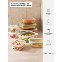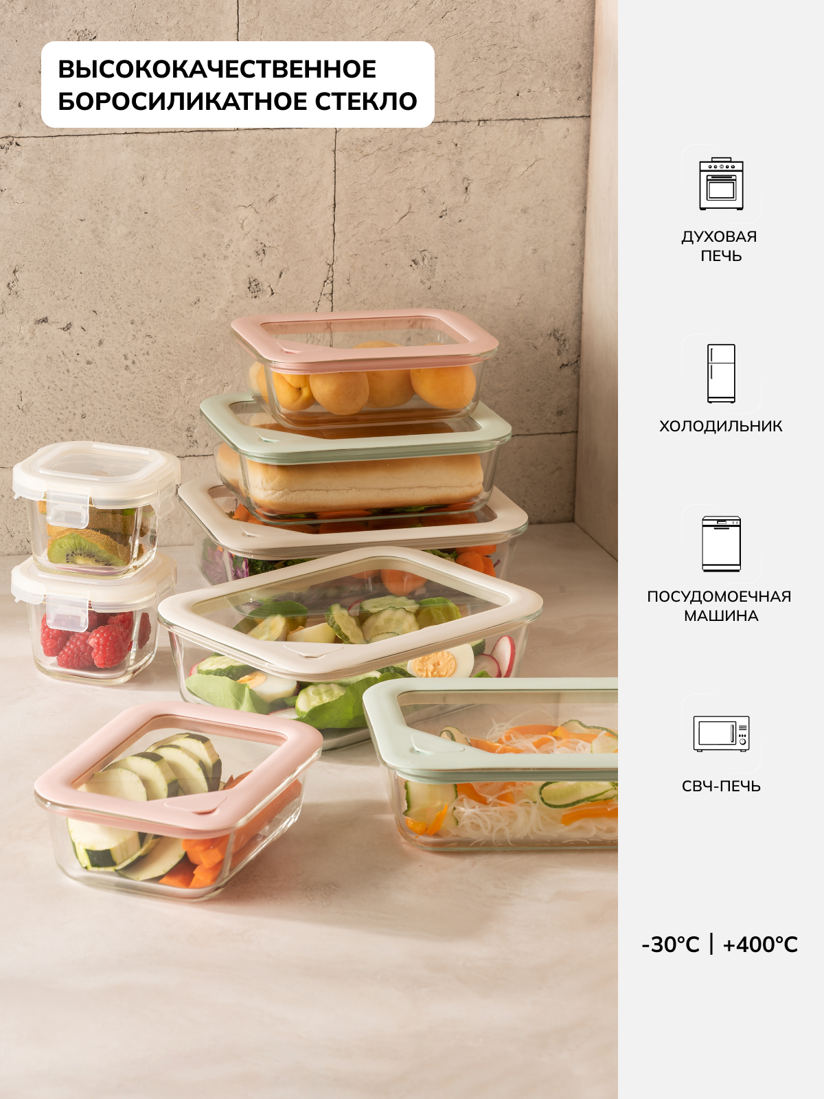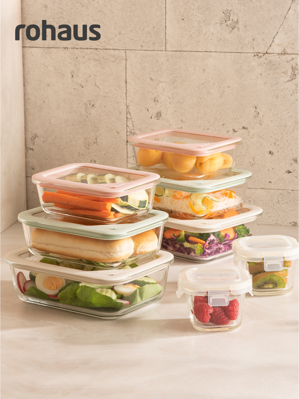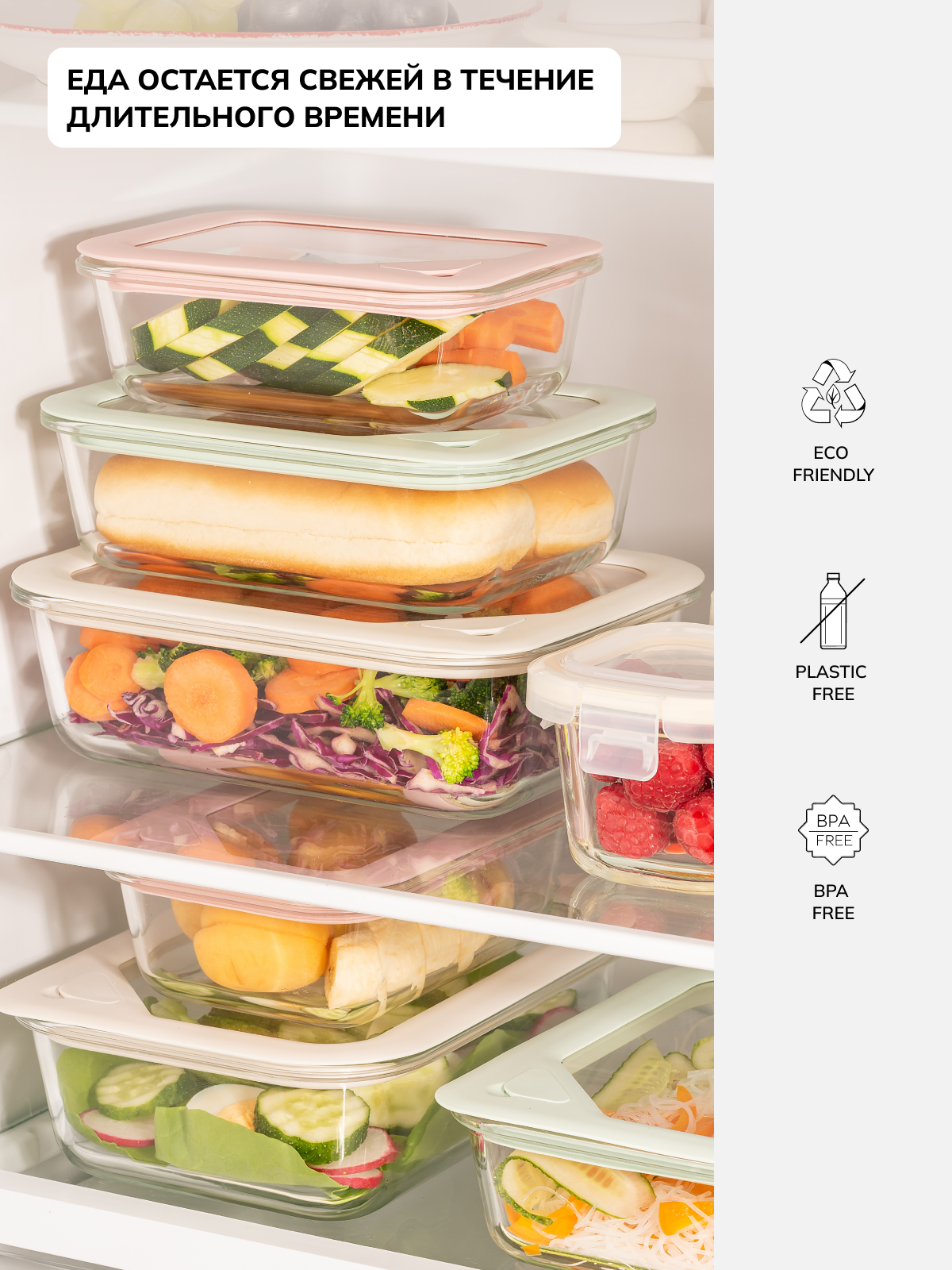 Набор стеклянных контейнеров для еды Rohaus с стеклянными крышками 8 штук: 2шт х 650 мл, 2шт х 1000мл, 2шт х 1500 мл + 2 мини контейнера 200мл: сравнение цен, характеристики, фото, актуальное наличие и цены.