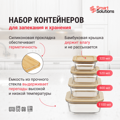 Купить Набор стеклянных квадратных контейнеров с бамбуковыми крышками, 4 шт. с доставкой по всей России. Набор стеклянных квадратных контейнеров с бамбуковыми крышками, 4 шт.: сравнение цен, характеристики, фото, актуальное наличие и цены.