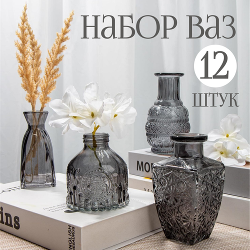 Набор стеклянных ваз для цветов и сухоцветов Solmax 12шт, Мини/ Ваза интерьерная, для декора и интерьера, дома, Серые: сравнение цен, характеристики, фото, актуальное наличие и цены.