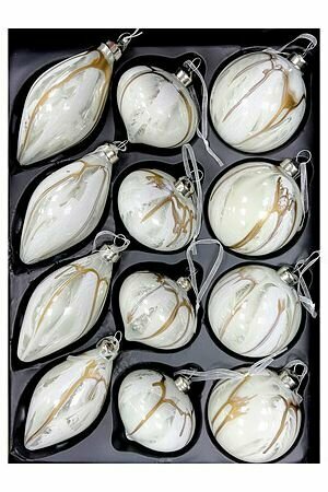 Купить Набор стеклянных шаров и украшений игра оттенков, кремовый, 8 см, 12 шт, Christmas Deluxe 87204-набор с доставкой по всей России.