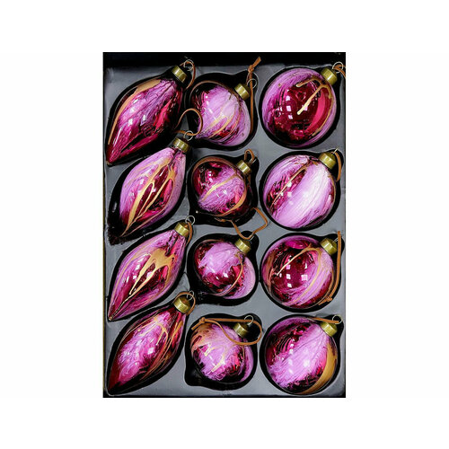 Купить Набор стеклянных шаров и украшений игра оттенков, лиловый, 8 см, 12 шт, Christmas Deluxe 87198-набор с доставкой по всей России.