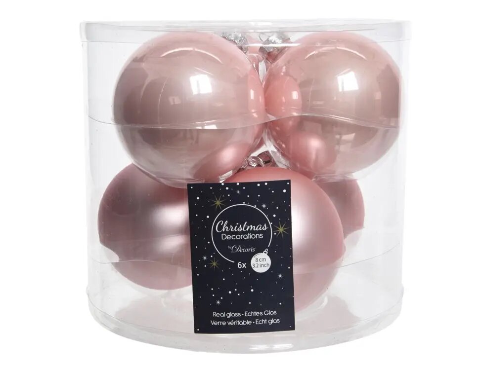 Купить Набор стеклянных шаров матовых и глянцевых, цвет: нежно-розовый, 80 мм, упаковка 6 шт, Kaemingk (Decoris) с доставкой по всей России.